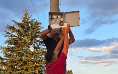 La Municipalidad de Suipacha estuvo trabajando en estos días en la colocación de nuevas cámaras de seguridad en el cruce de la calle Sarmiento y la Ruta 5.